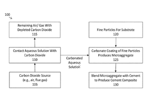 (57) A method of making a cement composite can include contacting an aqueous solution comprising calcium ions with a carbon dioxide source producing a carbonated aqueous solution. Fine particles can be submerged in the carbonated aqueous solution to produce microaggregate particles comprising the fine particles coated with calcium carbonate. The microaggregate particles can be combined with cement particles to produce the cement composite. The cement composite can be used in cementing applications for hydrocarbon wells including for casing liners and well plugs.