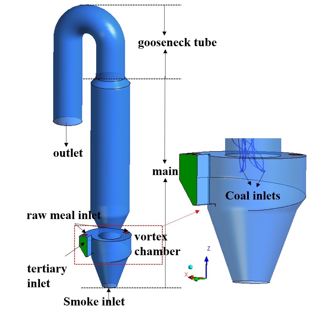 Due to the complex internal flow field of the precalciner, which not only involves the interaction between the tertiary air and flue gas, but also involves the coupling between the combustion of pulverized coal and the decomposition of raw meal, a reasonable analysis of the flow field is an important prerequisite for studying the precalciner.