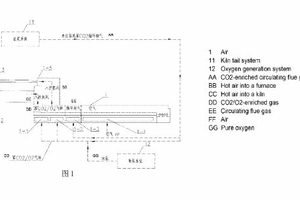 (57) An oxygen-fuel combustion clinker-cooler air supply system. The air supply system comprises a clinker cooler (1), a kiln tail system (11), an oxygen generation system (12) and a water-vapor removal cooling system (13), wherein an air supply region of the clinker cooler (1) comprises a fixed-end air supply region (1-1), a first air supply region (1-2), a second air supply region (1-3) and a third air supply region (1-4); cooling air of the fixed-end air supply region (1-1) and the first air supply region (1-2) is a gas mixture which is composed of a circulating flue gas of the kiln tail system (11) and oxygen prepared by means of the oxygen generation system (12); and a rotary kiln (2) and a tertiary air pipe (3) are provided at one end of an air outlet of the clinker cooler (1). After being heated by means of clinker, a gas rich in oxygen and carbon dioxide is fed into the rotary kiln (2) and a decomposing furnace (4), such that the oxygen-fuel combustion and carbon dioxide enrichment of a whole firing system are realized; moreover, the oxygen demand of a whole cement oxygen-fuel combustion system can be controlled, and a gas barrier above a clinker grate cooler in the second air supply region (1-3) can also be achieved.