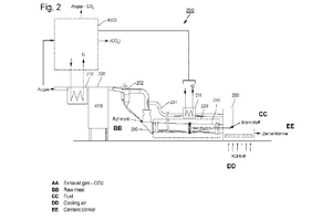 (57) The invention relates to a plant (100, 200, 300, 400) for producing cement clinker from raw meal, comprising at least one heat exchanger (110, 210, 310, 410) located downstream in the gas flow direction, and at least one device (120, 220, 320, 420) following in the material flow direction for preheating, calcining and sintering raw meal, wherein this device can consist of individual and successive devices, wherein the at least one device (120, 220, 320, 420) for preheating, calcining and sintering raw meal is connected on the primary side to the at least one heat exchanger (110, 210, 310, 410) located downstream in the gas flow direction and is exposed to exhaust gas. According to the invention, the at least one heat exchanger (110, 210, 310, 410) located downstream in the gas flow direction is connected on the secondary side to a downstream plant for separating and/or storing carbon dioxide (CO2) from the exhaust gas. This plant configuration, without a raw meal preheater, allows the plant to be operated with an excess of fuel, so that the exhaust gas from the plant has enough heat to operate a coupled process for the separation and/or storage of carbon dioxide.