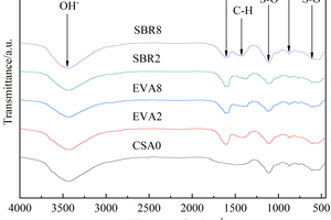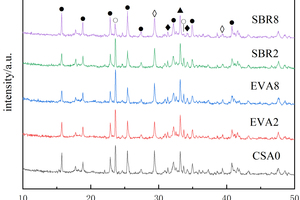 The effects of different dosages of EVA and SBR on the resistance of CSA paste to sulfate erosion under the condition of full soaking in sodium sulfate solution were studied. Based on the development rule of the flexural strength of polymer-modified CSA paste after immersion in Na2SO4 solution, combined with the flexural erosion coefficient, the resistance to sulfate erosion of polymer modified CSA paste was analyzed and evaluated. To reveal the mechanism, the effect of EVA and SBR on hydration characteristics and microstructure of CSA paste under different conditions were investigated by XRD, FTIR and SEM-EDS. Results show that the sulfate resistance coefficient increases gradually with the increase of EVA content; after adding SBR, its flexural erosion coefficient first decreases and then increases gradually with the increase of SBR content. Microscopic analysis shows that under the erosion conditions of the Na2SO4 solution, the amount of AFt in CSA paste decreases with the increase of EVA content, and first decreases and then increases with the rise of SBR content.