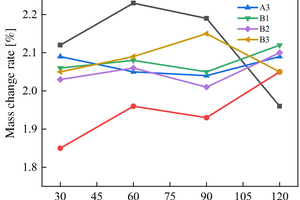 Fly ash, slag powder, and metakaolin were used as the main raw materials to prepare the ternary alkali-activated cementitious materials, and the compound alkali-activated cementitious materials with different proportions were corroded in 5% (NH4)2SO4 solution for 120 d by different immersion methods to study their sulfate resistance. Then X-ray diffraction (XRD) and scanning electron microscopy (SEM) were used to analyze the erosion mechanism of alkali-activated cementitious materials with different mix ratios. Results show that the alkali-activated cementitious material containing 50% slag powder, 25% fly ash and 25% metakaolin shows the best sulfate resistance in (NH4)2SO4 solution and the alkali-activated cementitious material with 60% slag powder, 28% metakaolin and 12% fly ash has the worst corrosion resistance. XRD and SEM analysis confirms the existence of gypsum phase in alkali-activated cementitious materials specimens when exposed to ammonium sulfate, indicating that chemical erosion damage occurs in the interior. These results are expected to provide reference for the theoretical research and practical application of alkali-activated cementitious materials.