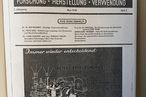 Over the years, the journal has changed and developed. In May 1948, the first issue of the first edition appeared, “ZEMENT KALK GIPS – Forschung, Herstellung, Verwendung”. Now also no longer as a weekly newsletter, but as a technical journal with mainly scientific-technical topics and monthly publication. After the Second World War, the economy developed rapidly, there was the economic miracle. All this cannot happen without the construction industry, which in turn needs building materials, one of the most important for concrete buildings is cement. Large quantities of cement are needed and so the expansion and enlargement of the plants are the main focus.