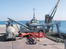 On March 15th, 2012 IBAU HAMBURG has officially handed over during an inauguration ceremony the new Cement Import Terminal in the Malmö NorthernHarbour (Fig. 1) to CementaAB, being part of the HeidelbergCement Group. The EPC-contract, including piling works, civil works, steel structure supply and erection as well as electrical and mechanical supply and erection has been successfully commissioned in November 2011 without any delays. IBAU HAMBURG successfully completed the 18 months construction and commissioning phase without one single accident. The Cementa owned ships can discharge at the terminal with up to 1000 t/h. The cement is fed to the multicompartment storage silo which has a height of 90 m, a diameter of 26 metres, with 6 chambers and a capacity of 30 000 tonnes. The distribution takes place via three combined truck/wagon loading lanes, each with a capacity of 250 t/h. The whole terminal can be operated 365 days/year and 24 hrs/day fully automatically. According to the Mayor of the City of Malmö, the new Cement Import Terminal with its unique design has now become a new landmark in the Öresund region (Fig. 2).