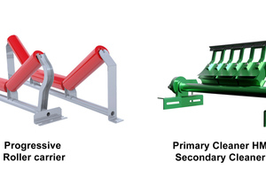 For better damping of the belt at the loading point, so-called loading rollers (PSV1,20F,63/108NA,323) have also been fitted. These shock-absorbing rollers are fitted with rings designed to absorb the impulse generated by the impact of the material on the belt
