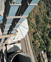 Furthermore, the belt of a bucket elevator needs to provide a high tensile strength, a low net weight and a low elongation, while simultaneous running in good alignment is demanded. This is achieved by a specialized production process and most of all by a high transversal rigidity. The bucket elevator belt has to be optimally designed for its attachments like buckets, rubber seals and endless splices in order to function as a reliable complete system in daily operation, even after many years. All this is ensured by the carcass construction in combination with the bucket fastening system. Closely spaced high-tensile steel cords act as continuous tensile members.