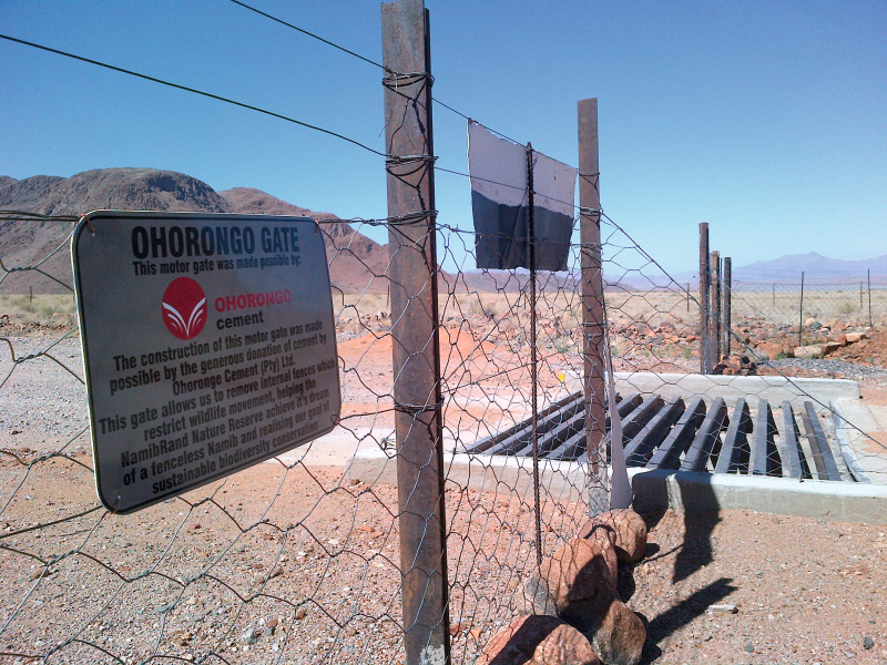 Another project was the removal of a motorgate or “cattle guard” (Fig. 2). Permission was recently received from the Namibian Roads Authority to move this cattle grid to the southern boundary of the Reserve. The newly constructed gate was completed in early 2014 and allows the removal of internal fences which restrict wildlife movement, helping the NamibRand Nature Reserve achieve its dream of a fenceless Namib and realizing their goal of sustainable biodiversity conservation.