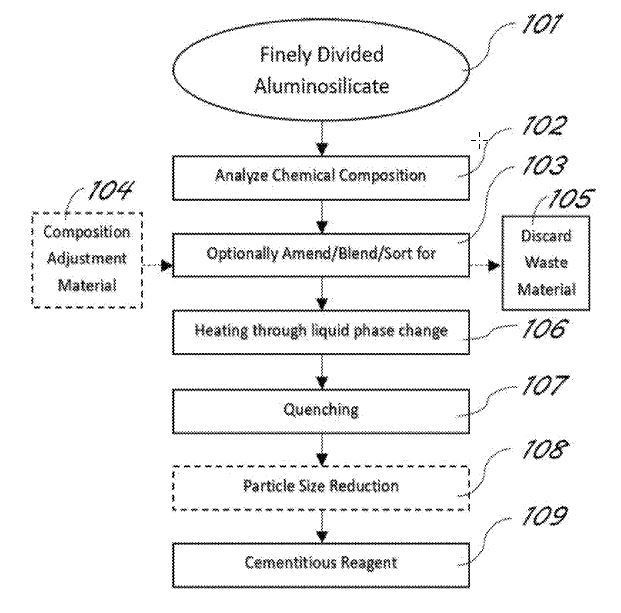 (57) Described are cementitious reagent materials produced from globally abundant inorganic feedstocks. Also described are methods for the manufacture of such cementitious reagent materials and forming the reagent materials as microspheroidal glassy particles. Also described are apparatuses, systems and methods for the thermochemical production of glassy cementitious reagents with spheroidal morphology. The apparatuses, systems and methods make use of an in-flight melting/quenching technology such that solid particles are flown in suspension, melted in suspension, and then quenched in suspension. The cementitious reagents can be used in concrete to substantially reduce the CO2 emission associated with cement production.