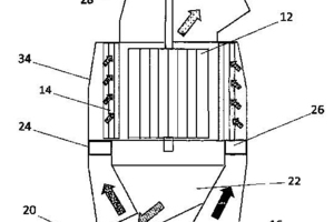 (57) The invention relates to a classifier (10) for classifying a material flow, comprising a rotatable rotor cage (12), a guide vane ring (14) arranged around the rotor cage (12), an inlet (16) arranged below the rotor cage (12) for letting the material flow into the classifier (10), a fine-material outlet (18) above the rotor cage (12), and a coarse-material outlet (20), wherein the classifier (10) has an annular gap (24) below the rotor cage (12) and a flow device (26) for orienting, in particular homogenizing, the material flow is arranged in the annular gap (24).