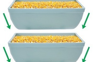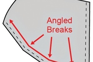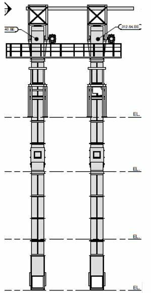 High efficiency elevator buckets have a smooth interior front face with compound curve geometry. This delivers an efficient discharge with no impediments and no crevices where product can collect. Clean out is efficient and cross contamination is minimized. High efficiency elevator buckets feature a tapered bottom which allows the buckets to be mounted closely together with a minimum of vertical spacing. This creates a “column” of input material and generates the greatest amount throughput possible in the elevator leg system. Close vertical spacing requires the efficient entry and exit of input materials into the elevator bucket string. The tapered bottom allows the buckets to fill and discharge not just from the front, but from the sides as well. This style of bucket feeds more efficiently on the up-leg, but also in the boot section as well. The tapered bottom allows high efficiency elevator buckets to nest inside one another. This makes shipping and storage more efficient. High efficiency elevator buckets do not have wings or ears. Material cost efficiencies are realized with the removal of this physical feature. In some cases, weight savings are realized as well.