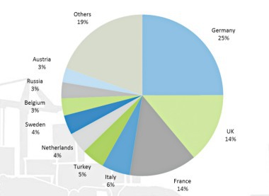 Most regions in Western and Northern Europe saw steady growth. Coming from already high levels, many of these markets reached new historical record levels. Southern Europe and Central and Eastern European markets continued their recovery and grew at above-average levels. Russia confirmed the positive trend of the previous year. The Turkish market was the negative exception: after a stable start into the year, the market fell victim to the general economic climate in the country and recorded a disastrous second half.
