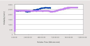 Gypsum was studied from the time of mixing for more than forty-five days using the MFC ultrasonic analyser measuring system for characterisation of inorganic binder systems. The complete curing process was subdivided into eight time sectors.