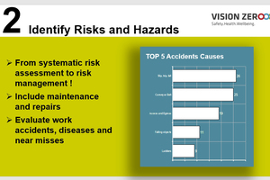 No. 2 asks: What hazards and risks do we have at our workplaces? This means, on the one hand, to look back and to really analyze the past accidents and illnesses, including the so-called near-misses – but also to look ahead in a proactive manner. You have to create systems of risk assessment, or better to manage the risks.