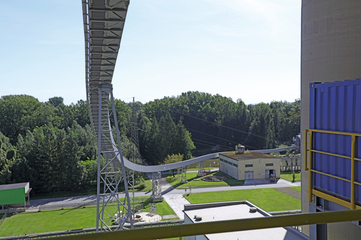 The U-shape Conveyor is the key component of the entire system. “We evaluated and considered different variants of mechanical conveying systems,” reports the Beumer expert. “Finally we decided on this conveying solution. U-shape Conveyors can be simply integrated and are also suitable for long distances and rough terrain as well as horizontal and vertical curves. The material conveyed is protected against external influences such as wind, rain or snow and the environment against possible material loss. This conveying solution is suitable for coarse but also for very fine material. The system in Retznei has a diameter of 250 mm, a conveying length of 253 m and navigates at a speed of one metre per second a height of 32 m with a maximum inclination of more than 20 °. At the feeding point, the U-shape Conveyor is open as a traditional belt conveyor,” explains Jan Tuma. “A special idler configuration brings the belt in a u-shape.” This way the bulk material reaches the discharge station. An idler configuration similar to that for the shaping is used for opening the belt. Compared to the Pipe Conveyor, the U-shape conveyors have, among other things, considerably higher feeding rates because a smaller belt is used.