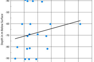 There is a good correlation between the porosity and the dry density (Figure 5). Since there is also an increase of the densities at deeper levels, the increase in density and decrease in porosity are likely to be a result of consolidation at higher overlying stresses.