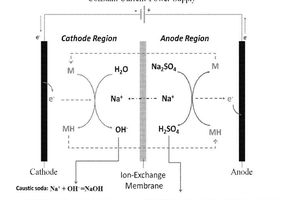 Method of making alkali and gypsum by proton-coupled electron transfer reaction