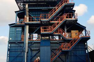 The inlet (grate size) is 6.50 m x 6.50 m and the height of the inlet (grate size) 15 m. The overall dimensions (with walkways) are 10.00 x 17.80 m. The hopper disposes of a capacity of 65 m3/density 1.2–1.4 kg/dm3 and its weight is approx. 215000 kg.