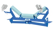 The new belt centring station corrects belt misalignment on one or both sides. No sensor rollers are required as the tapered rollers initiate movement of the belt guiding system. The unit responds immediately to misalignment and corrects it. It also ensures that the belt does not touch the structure, thus preventing damage and reducing maintenance costs.