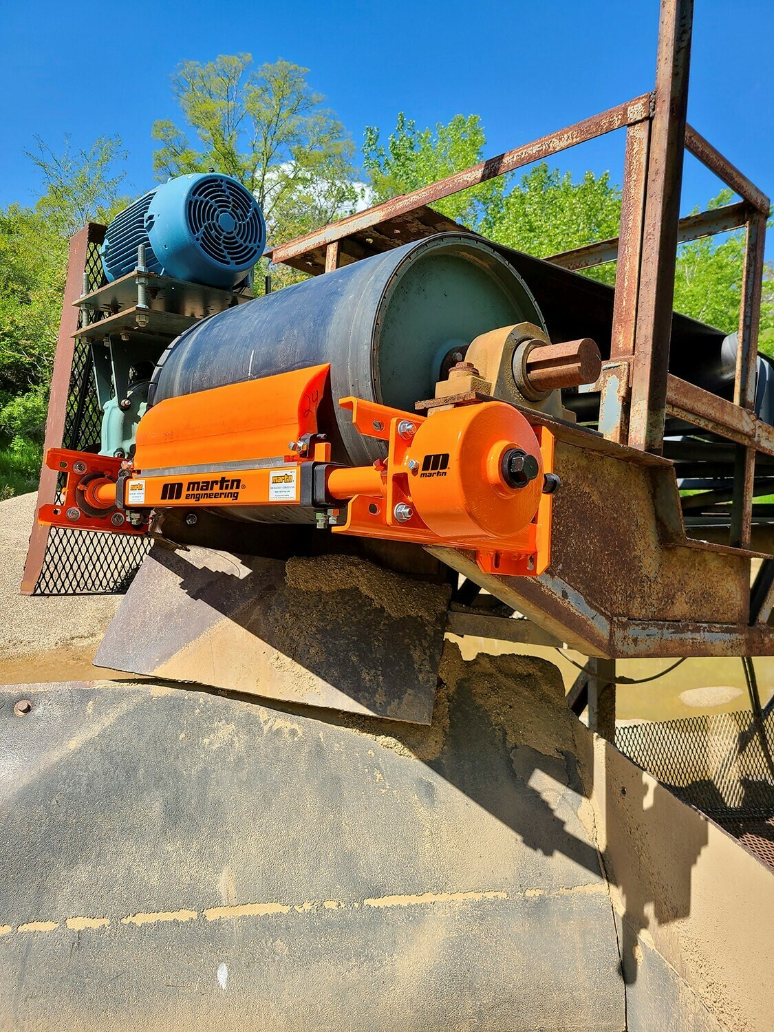 A new powered conveyor belt tracker from Martin Engineering delivers immediate and continuous precision adjustment of hard-to-track reversing conveyors, helping operators reduce spillage and extend the life of belts and other system components. Able to effectively center the belt regardless of the travel direction, the robust unit has demonstrated greater durability and longer service life than previous designs, translating to a reduced cost of ownership. Versatile enough to run on 110V/220V power or a plant’s existing compressed air, the Martin Tracker Reversing can even be specified with the company’s unique Roll Gen System, which uses the kinetic energy of the moving belt to produce a supply of electricity sufficient to power sensors, scales, lights and other devices when no power is readily available.