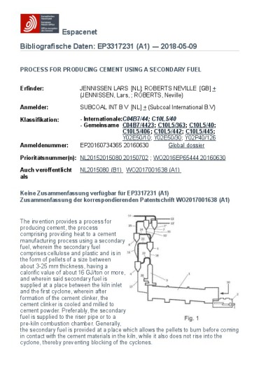 (22) 30.06.2016(43) 09.05.2018(57) Summary of the corresponding patent WO2017001638 (A1): The invention provides a process for producing cement, the process comprising providing heat to a cement...
