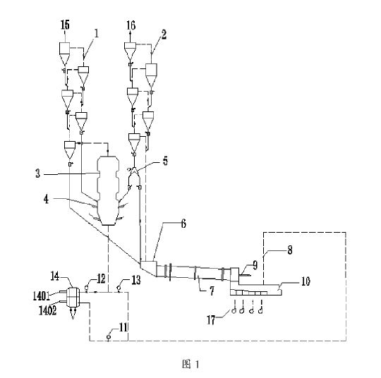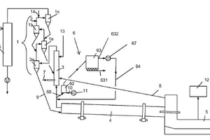 (57) A bypass system is used in the system and method for producing cement clinker, wherein a portion of a furnace exhaust gas occurring in a furnace is channeled off as a bypass gas via a bypass line connected between the furnace and a calciner, cooled and dedusted. The dedusted bypass gas is then directed back to the calciner and/or into a tertiary air duct arranged between the cooling means and the calciner and/or into a region between the furnace and the calciner.