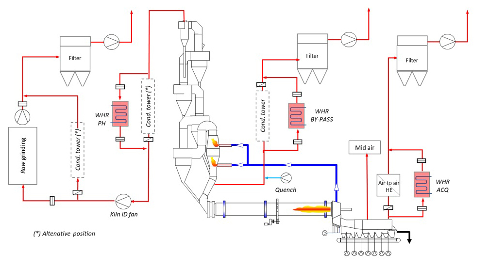 This article discusses the possibility of improving the utilization of waste heat from a clinker cooler for power generation by use of a g-cooler with upstream recuperator. The g-cooler is a moving bed reactor with indirect heat dissipation. Up to now, this cooler has always been operated with cooling air. With a view to achieving more efficient heat extraction, an analysis was carried out to assess the suitability of a g-cooler utilizing heat transfer oil as the coolant and evaluate the consequences.