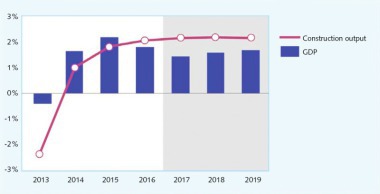 The question of how things are going in Europe’s construction sector was focused on at the 82nd Euroconstruct Conference in Barcelona/Spain, this past November. According to those experts’ predictions, the European construction industry can expect continued growth, if at a rather meagre rate. This is due in part to the fact that public-sector demand, as one of the most important factors of all for keeping the branch strong, is only expected to increase in a few countries, and then just slightly. The growth estimates for the next three years all across the European construction sector amount to a mere 2.1–2.2 %. For further information on potential future scenarios for the European construction arena, please turn ahead to page 26.