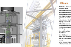 During the kiln “inversion” period a dome valve extracts the fuel dust from the silo and conveys it to the “loss-in-weight feeder”. A butterfly valve maintains the feeder pressurized while the fuel dust is being dosed and conveyed to the kiln. All the piping connected to the “loss-in-weight feeder” are interrupted by expansion bends to allow proper weighing. During the “loss-in-weight” tank filling time a venting system with bunker type bag filters allows the air relief opening two pneumatically operated valves. These valves are closed while the tank is pressurized, and the fuel dust is being dosed and transported to the kiln lances. A rotating paddle wheel placed inside the feeder ensures that the fuel dust is constantly and uniformly discharged into all rotary valves.