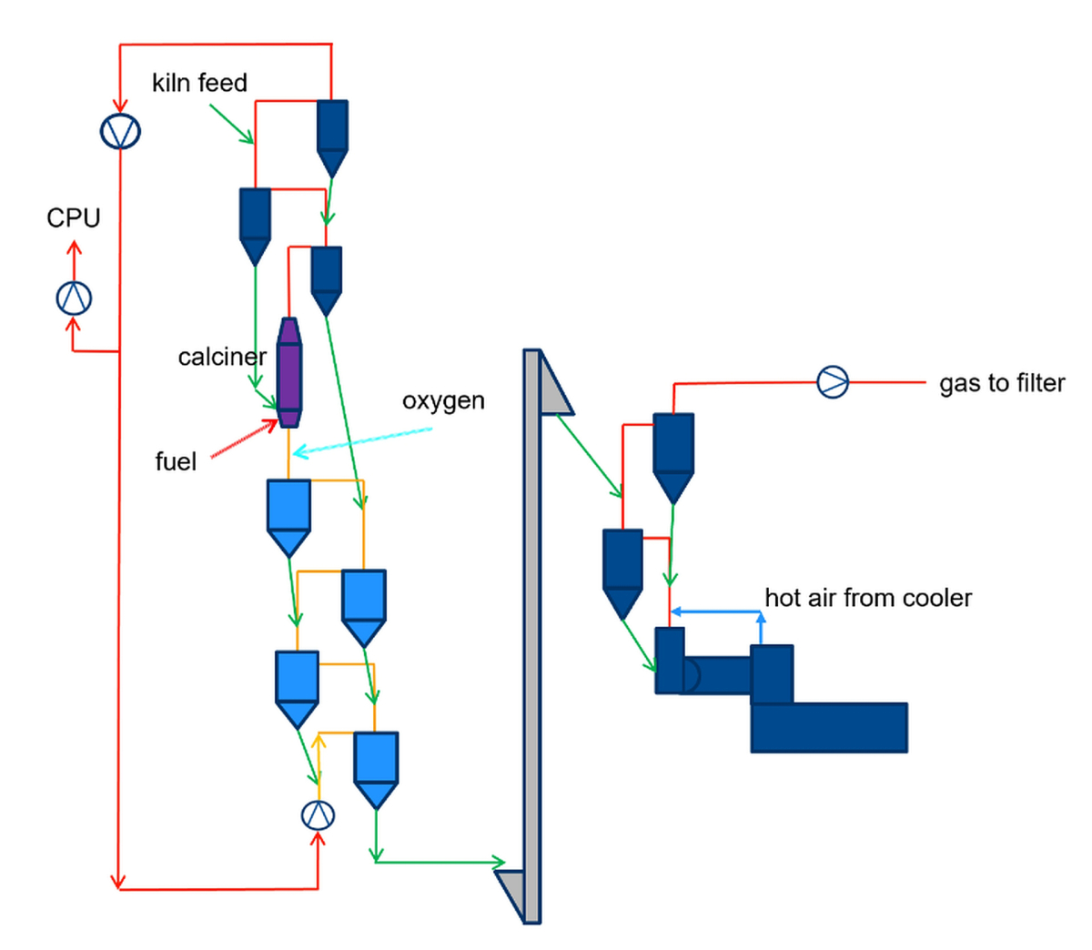 Other heating systems such as ceramic gas burners could be installed instead of electrical heating elements, but electrical heating elements can be powered 100% by renewable energies such as wind or solar power, so that the calcination process can be completely carbon-neutral, with no CO2 emissions generated.