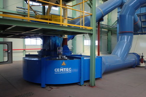 Cemtec Cement and Mining Technology GmbH is a leading manufacturer of dry and wet mills for the cement and mining industry with over 30 years of experience located in Enns/Austria. Its portfolio spans from single machines, spare parts and engineering services to the erection and commissioning of turnkey projects in the cement, mining and recycling industry. One of Cemtec’s strengths is retrofitting existing plants with state-of-the-art equipment. Since the early seventies modern air classifiers are applied to perform cement grinding in closed circuit. The first separators in that field of application (1st generation classifiers, see Figure 1) were characterised by one single motor driving both an air fan and the separator wheel. While those classifiers were quite compact in terms of footprint the separation efficiency was poor.
