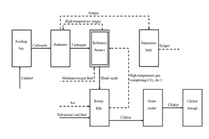 (57) A low-carbon production method and production system for cement clinker. The production method comprises calcining a metal oxide, which is obtained by converting carbonate in a raw material by means of a methane dry reforming reaction, to form cement clinker, and meanwhile obtaining synthesis gas. The production system uses a reformer furnace for methane dry reforming of carbonate to replace a carbonate decomposition furnace in an existing cement production system.