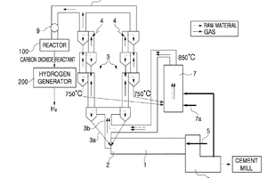 (57) Proposed is a system for capturing and recycling carbon dioxide and producing hydrogen for a cement manufacturing facility. The system includes a preheater provided with multiple stages of cyclones arranged in series in a vertical direction and configured to receive and preheat a cement raw material, a calciner configured to calcine the cement raw material preheated by the preheater, a kiln configured to burn the cement raw material calcined in the calciner, an exhaust line connected to the cyclones and configured to discharge an exhaust gas respectively discharged from the calciner and the kiln to the outside, a reactor configured to capture carbon dioxide in the exhaust gas, to collect a reactant containing the captured carbon dioxide, and to separate a carbon dioxide reactant and a waste solution in the reactant, and a hydrogen generator configured to generate hydrogen gas by receiving the separated carbon dioxide from the reactor.