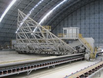 Cimento Itambé has awarded Aumund do Brasil and Schade Lagertechnik GmbH, Herne, a contract for the rebuilding of a limestone storage facility. Apart from the refurbishment of an existing scraper reclaimer, the supply of a new bridge reclaimer forms part of the scope of supply which is scheduled to be employed for homogenised reclaiming of the raw material. Whilst the refurbishment of the old unit was the first to be implemented, the new bridge reclaimer has been in service since the beginning of 2012. As a first step, the Schade specialists fitted the existing scraper with a second harrow sourced from a no longer existent local supplier. Flexible utilisation of the recently separated longitudinal stockpiles is made possible in this way. Prior to the rebuild, the old scraper which was equipped with just one harrow, had been transported with the aid of a mobile platform to one of the two former (parallel) stockpiles. Owing to the extension of the raw material storage totalling four separate longitudinal stockpiles, an additional bridge scraper was necessary which runs on a 33 m long track. The scraper achieves a reclaiming capacity of 500 t per hour. It is employed in parallel with the refurbished older unit. The Schade installation and components were designed in such a way that a ten-fold and two-fold warranty have been given for the chain and gear systems respectively.
