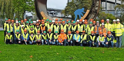 The cement industry is a fascinating, highly varied and extremely demanding sector. Nearly 50 future male and female engineering students from the fields of process- and mechanical engineering, in addition to other related disciplines, saw this at first hand during the 2012 ZKG Technical Excursion. This year’s host was HeidelbergCement; at the company’s Leimen plant and at its main offices in Heidelberg the students were able to gain both theoretical and practical insights into cement production. The individual process operations were examined jointly with industrial partners, and were then discussed in depth. The first item on the agenda this year was a visit to the Nussloch quarry (Fig. 1). Uwe Klein (HeidelbergCement) introduced the interested participants to various blasting-based methods for the extraction of mineral resources (Fig. 2). Then: so much for theory, on to practical matters: the visitors were able to observe a real-life blasting operation. Melanie Meier (Geopark Ranger) then focussed on local geology, flora and fauna. Biodiversity, renaturing and sustainable quarry management are all aspects high on the agenda at HeidelbergCement, a globally active cement group. The visit progressed from the quarry to the plant, where the participants took a guided tour along the production chain in three groups, led by Wilfried Fendler, Herwig Marx and Wolfgang Bender.