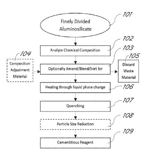 (57) Described are cementitious reagent materials produced from globally abundant inorganic feedstocks. Also described are methods for the manufacture of such cementitious reagent materials and forming the reagent materials as microspheroidal glassy particles. Also described are apparatuses, systems and methods for the thermochemical production of glassy cementitious reagents with spheroidal morphology. The apparatuses, systems and methods make use of an in-flight melting/quenching technology such that solid particles are flown in suspension, melted in suspension, and then quenched in suspension. The cementitious reagents may be combined with Portland cement and an alkali activator to form a blended cement. The cementitious reagents can be used in concrete to substantially reduce the CO2 emission associated with cement production.
