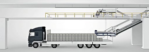 The high performance SpeedFlexx truck direct-loader loads a variety of package types, in-layers-arranged, with or without pallets, directly onto open trucks and trailers. It impresses with its speed of up to 260 t or 4500 bags per hour, which can be reached through its highly efficient loading cycle and operation in a second lane without long waiting times.