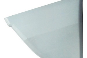 High efficiency elevator buckets have a smooth interior front face with compound curve geometry. This delivers an efficient discharge with no impediments and no crevices where product can collect. Clean out is efficient and cross contamination is minimized. High efficiency elevator buckets feature a tapered bottom which allows the buckets to be mounted closely together with a minimum of vertical spacing. This creates a “column” of input material and generates the greatest amount throughput possible in the elevator leg system. Close vertical spacing requires the efficient entry and exit of input materials into the elevator bucket string. The tapered bottom allows the buckets to fill and discharge not just from the front, but from the sides as well. This style of bucket feeds more efficiently on the up-leg, but also in the boot section as well. The tapered bottom allows high efficiency elevator buckets to nest inside one another. This makes shipping and storage more efficient. High efficiency elevator buckets do not have wings or ears. Material cost efficiencies are realized with the removal of this physical feature. In some cases, weight savings are realized as well.