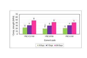 Chemical analysis for LOI, MgO, SO3, Na2O, K2O, Cl, sulfide sulfur and IR of the above cement blends prepared in Sets-1 to 4 showed their conformity to the chemical requirements of the Indian standard IS: 455-2015 laid down for slag cement.