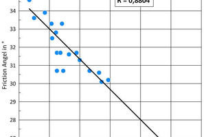 At Lägerdorf, the increased shear strength could be correlated with increasing depth for the western pits Heidestrasse (Figure 6a). Also, a correlation between cohesion and angle of friction was observed in the eastern deposit Moorwiese (Figure 6b). Both correlations are highly significant, as the correlation coefficients (R) show. However, no correlations of angle of friction, cohesion, porosity or permeability could be determined with increasing depth (Figure 7), which is proven by the low correlation coefficients.