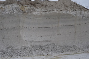 The deposit at Volsk has layers for harder chalk at the contact to the underlying clays. It is suspected that this hardening is not a primary material property of the chalks, but rather a secondary cementation by groundwater flows along this boundary of lower permeability. Consequently, this part of the deposit requires drilling and blasting for excavation.