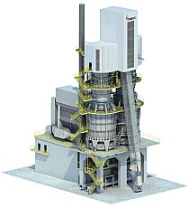 BFG is compressed to a pressure of 400 mbar by a high efficiency radial fan and is supplied to the top of the burning shaft. It passes the pre-heating zone of the burning shaft and is pre-heated to a temperature of about 700 °C.