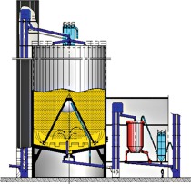The scope of supply consists of two dual cell silos type ME18/EC11. Each silo has an inner diameter of 18 m and an approximate total volume of 10 000 m³. The dual cell silos were designed with a total of three simultaneous discharges: two to feed the truck loading equipment and one to feed a packing line. Furthermore, each silo has been designed with two truck loading stations complete with mobile loaders with a capacity of 200 t/h.