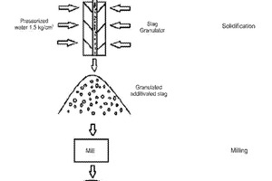 (57) The present invention relates to a novel cementitious product produced from steelworks slag additivation to obtain material having properties suitable for use in the partial or total clinker replacement for the production of different types of cement. The process, which is also object of this invention, aims to adapt the properties of steelworks slag, by means of thermochemical treatment, including and preferably, but not only, still in the liquid steelworks slag pot, taking advantage of the thermal input of steel processing, to form a greater amount of alite (essential compound to increase pozzolanicity), under controlled conditions. After additivation, preferably, but not exclusively, the additivated steelworks slag is subjected to quenching, comminution and concentration to stabilize the alite fraction, to release the present phases and to remove any excess contaminants, such as metallic iron.