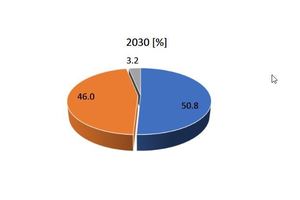 Figure 2 shows how, starting from the situation in 2019, a forecast for the global demand for gypsum as a raw material gypsum in the year 2030 can look. According to this, the percentages for natural gypsum will decrease from 55.4% to 50.8%, although in absolute terms, the production of natural gypsum will only decrease insignificantly from 173.1 Mt/a in 2019 to 171.8 Mt/a. The use of synthetic gypsum will not only increase in percentage terms by 2.4%, but also clearly overall from 136.8 Mt/a to 155.7 Mt/a. At first glance, this may not be apparent as losses for FGD gypsum are forecast, however, there are numerous sources for synthetic gypsum. For gypsum recycling, high growth rates from a low level to 3.2% and absolute quantities of around 11 M/ta are expected.